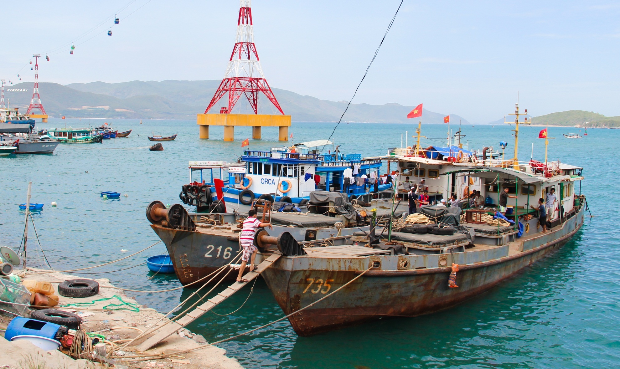 Tàu tiếp tế 735 của Công ty Bảo đảm an toàn hàng hải Nam Trung Bộ, trực thuộc Tổng công ty Bảo đảm an toàn hàng hải miền Nam trong thời khắc chuẩn bị nhổ neo để đến với Hòn Hải.