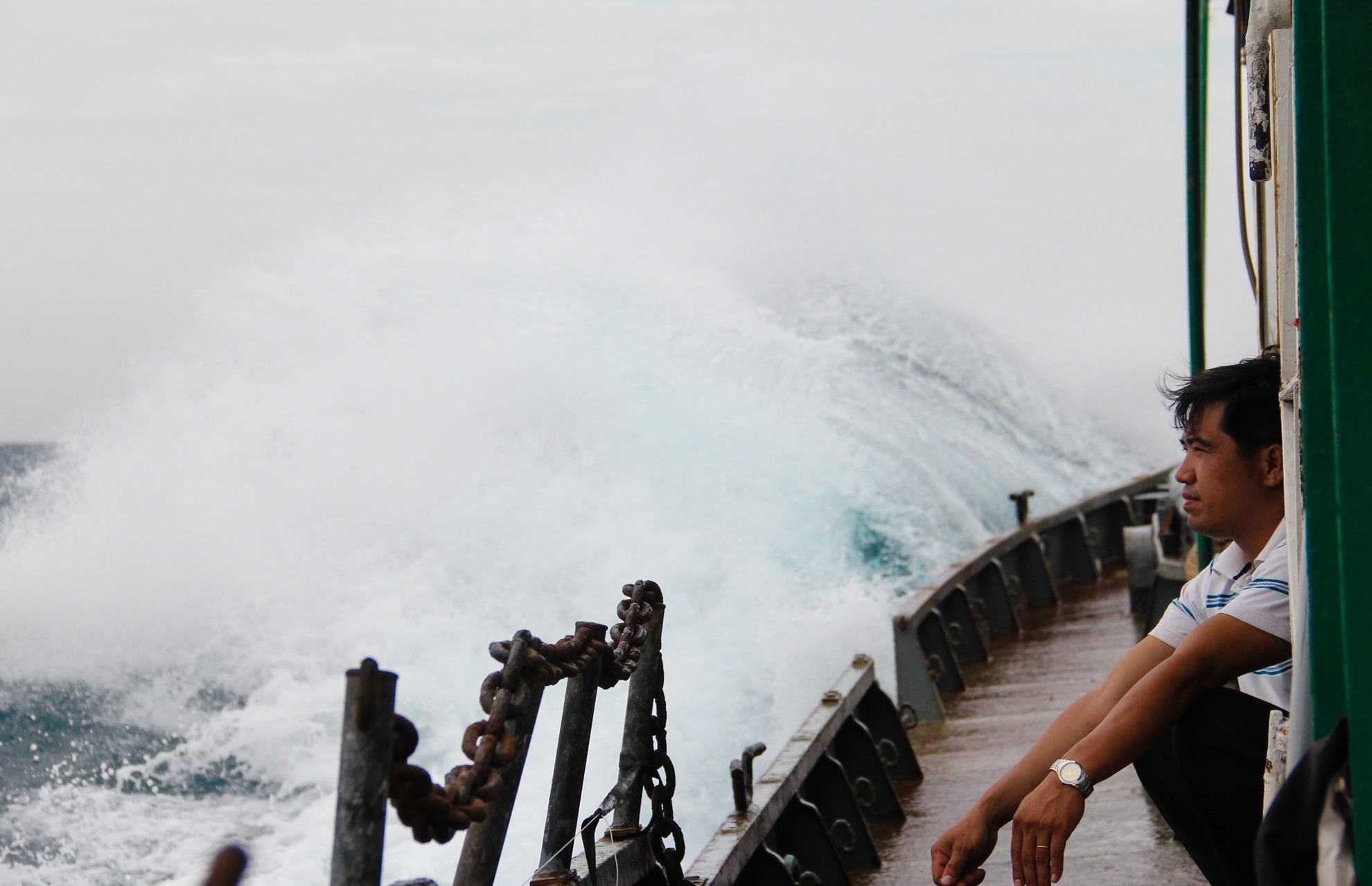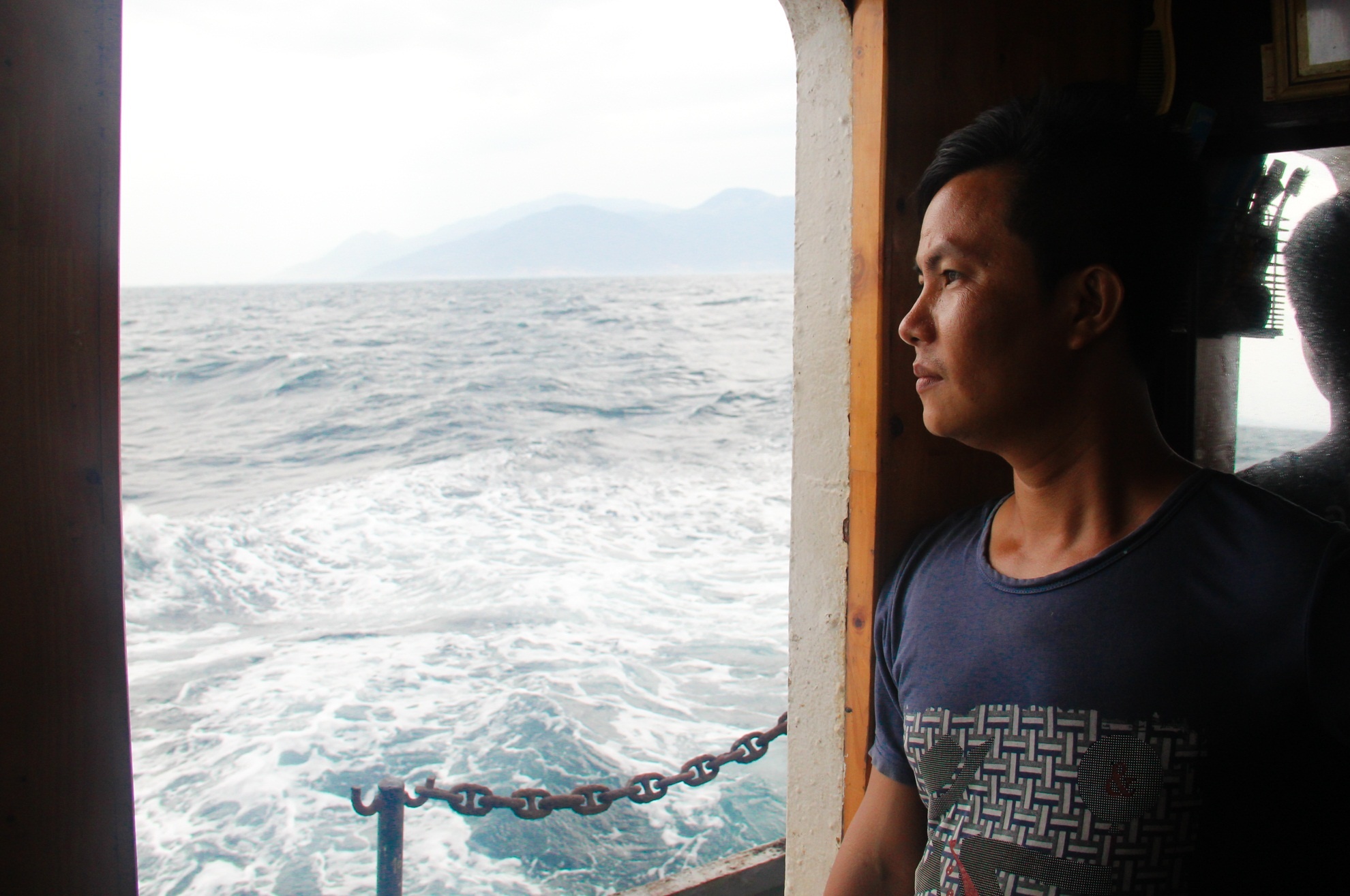 | Tàu rời bến được chừng 2 giờ đồng hồ bắt đầu gặp mưa dông và sóng lớn nổi lên, gió giật mạnh. Các thủy thủ đoàn phải căng mắt theo dõi tình hình để có thể hỗ trợ hoặc xử lý ngay khi thuyền trưởng có lệnh. |