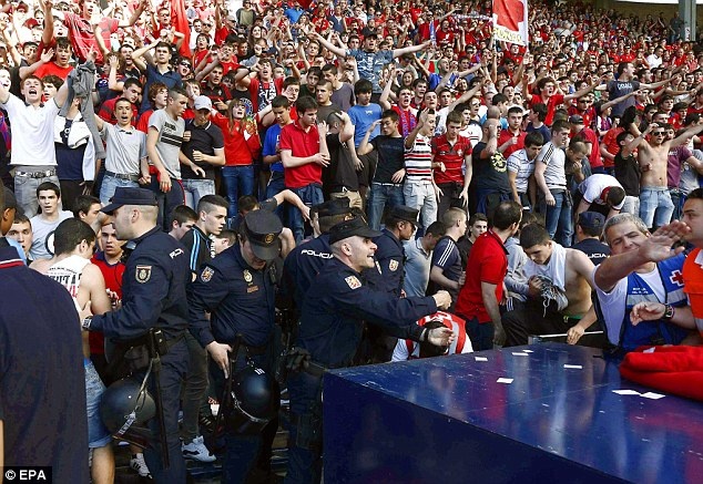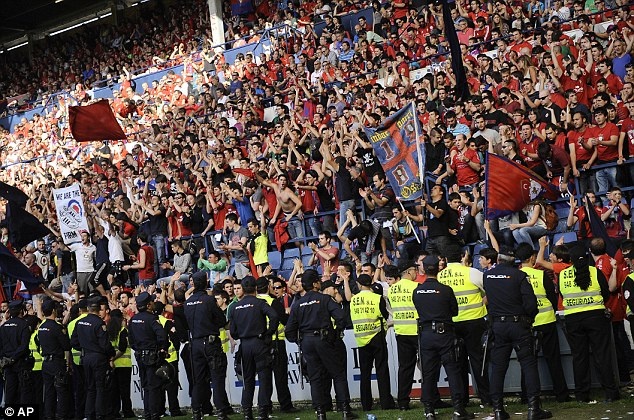 Trong trận đấu giữa Osasuna và Real Betis ở vòng 38 La Liga, sau khi Oriol Riera ghi bàn mở tỷ số ở phút 12 cho Osasuna, những CĐV của đội chủ nhà quá hưng phấn. Họ không ngừng nhảy nhót dẫn đến cảnh chen lấn, xô đẩy.