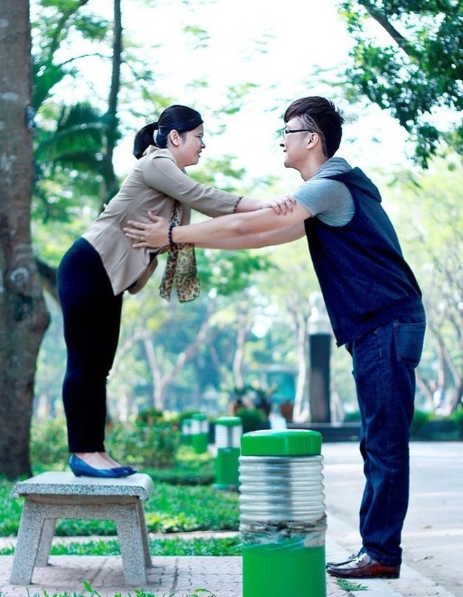 Cặp đôi chàng 1m88, nàng 1m52 tại Hà Nội cũng khiến nhiều người bất ngờ. Không chỉ chênh lệch về chiều cao mà chú rể Tuấn Anh kém cô dâu Phương Chi tận 3 tuổi. Cả hai đã tiến đến hôn nhân và có một bé gái đầu lòng xinh xắn - Ảnh: Kênh 14. Xem thêm tại đây.