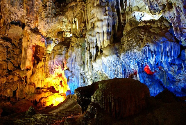 Hang Đầu Gỗ nằm trên đảo Đầu Gỗ thuộc vịnh Hạ Long, tỉnh Quảng Ninh. Cuốn Kỳ quan thế giới của Pháp xuất bản năm 1938 đã gọi hang Đầu Gỗ là Grotte des merveilles (động của các kỳ quan). Ảnh: Viettravel. |