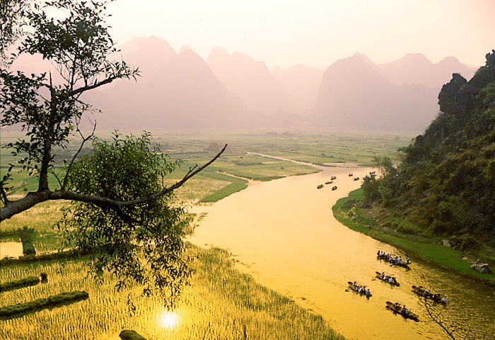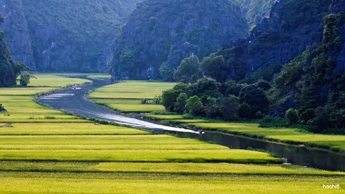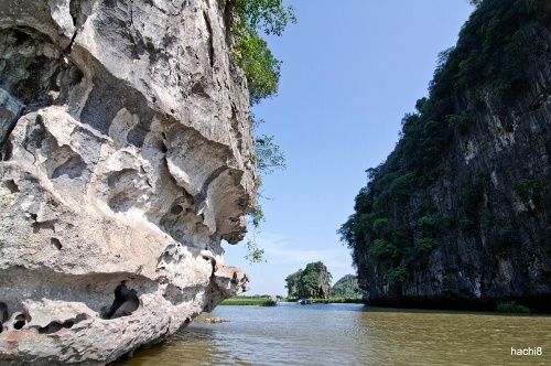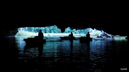 Phương tiện duy nhất để khám phá Tam Cốc là thuyền. Thuyền lênh đênh trên sông Ngô Đồng, uốn lượn qua các vách núi, xuyên các hang động. Ảnh: Hachi8. |
