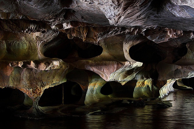 Ngay khi thuyền khuất cửa hang, cái nắng gió, oi bức của miền Trung lập tức biến mất. Thuyền càng vào sâu, ánh sáng càng nhạt dần rồi mất hẳn, mở ra một thế giới thạch nhũ kỳ thú. Ảnh: Luaviet. |