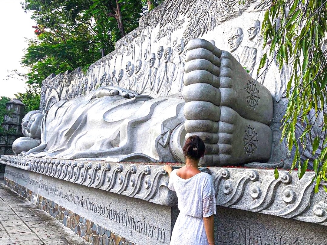 Chùa Long Sơn là điểm du lịch hút khách ở TP Nha Trang. Trong khuôn viên chùa, trên đường lên đỉnh đồi Trại Thủy, du khách có thể chiêm ngưỡng tượng Phật nhập Niết bàn điêu khắc tinh xảo. Trang TTĐT TP Nha Trang cho biết tượng bằng đá hoa cương, phía sau còn có bức phù điêu về 49 đệ tử của Đức Phật... Ảnh: Nataliadonovskaya. |