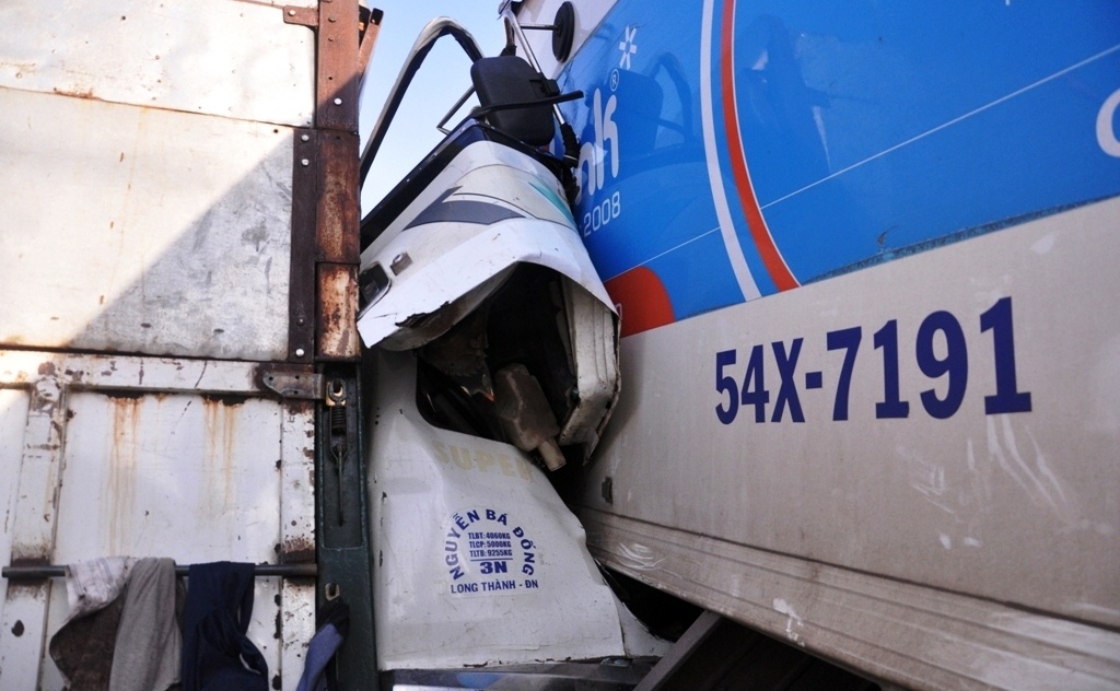 | Anh Nguyễn Văn Thanh, tài xế ôtô chở thiết bị chiếu sáng kể: "Sau khi gây tai nạn, cabin xe tải chở gỗ dính chặt vào thân xe của tôi khiến tài xế và phụ xe bị thương mắc kẹt lại, kêu cứu. Chúng tôi phải dùng búa, xà ben phá cửa đưa họ ra ngoài đi cấp cứu. Những người khác may mắn bị thương không nghiêm trọng". |