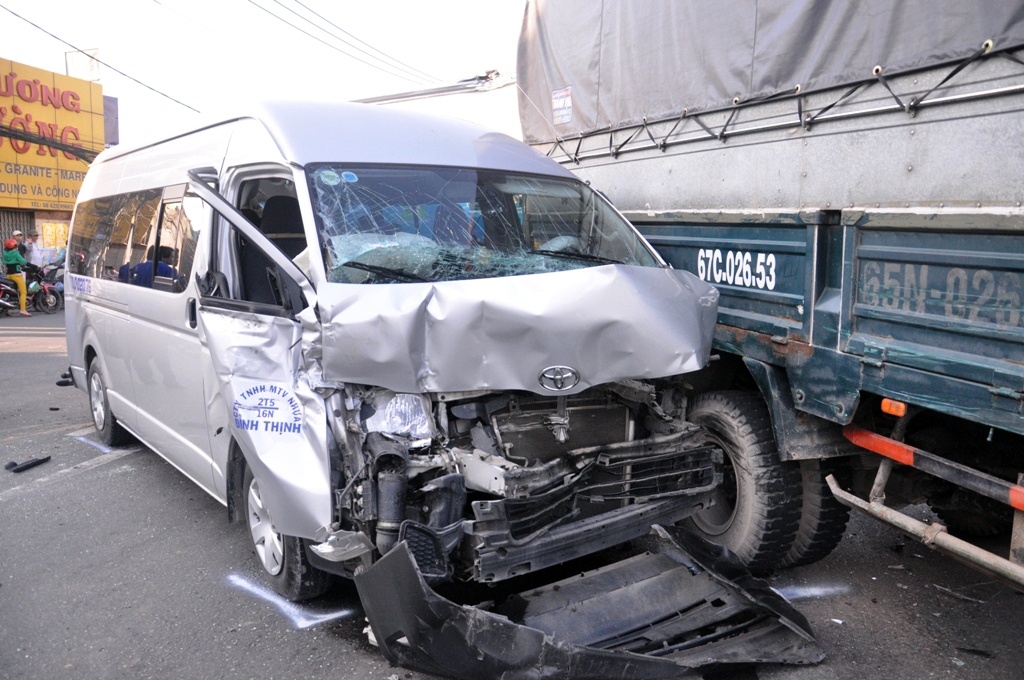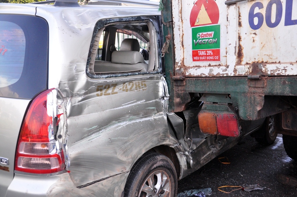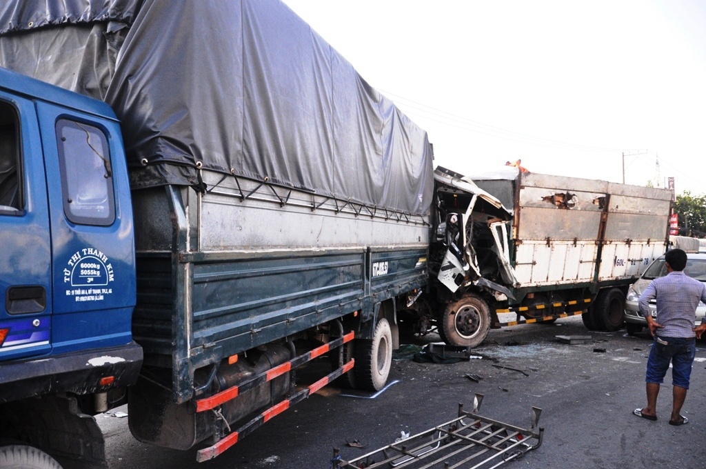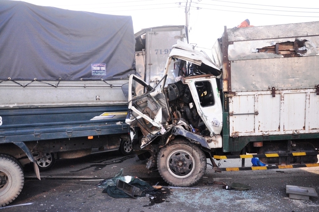 | Vụ tai nạn liên hoàn giữa 7 ôtô trên quốc lộ làm 5 người bị thương, trong đó 2 người bị thương nặng. Các nạn nhân đều là tài xế hoặc phụ xe của những ôtô này. Bảy xe trong vụ tai nạn đều hư hỏng nặng. |