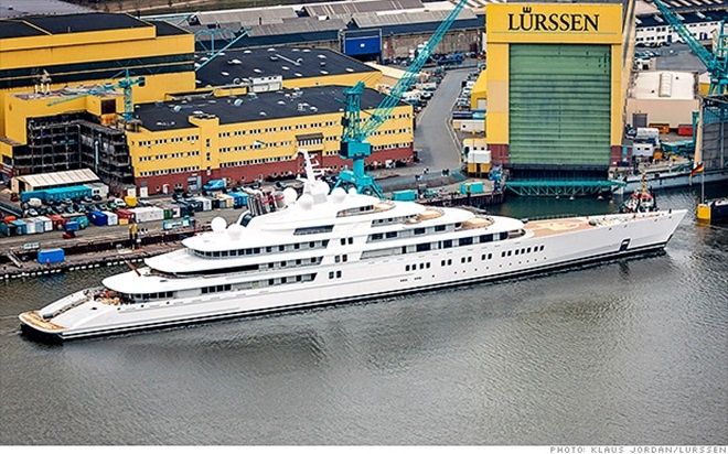 5. Du thuyền có an ninh chặt nhất: EclipseDài hơn 162m và có giá 485 triệu USD, Eclipse từng là du thuyền lớn và đắt nhất thế giới trước khi Azzam ra đời. Đây là du thuyền có hệ thống an ninh chặt nhất thế giới. Thuộc sở hữu của tỷ phú Nga Roman Abramovich, Eclipse được trang bị hệ thống laser có khả năng làm hỏng ống kính máy quay của những tay săn ảnh tọc mạch. Du thuyền này cũng được lắp đặt hệ thống chống tên lửa và có tàu ngầm thoát hiểm cùng nhiều tính năng an ninh khác. |