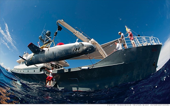 4. Du thuyền có tàu ngầm tuyệt vời nhất: Dr. NoDr. No được trang bị tàu ngầm có thể lặn sâu hơn 300m dưới đáy biển. Đây là một trong những tàu ngầm cá nhân lặn sâu nhất thế giới. Chủ nhân của Dr. No là đại gia ngành công nghệ Tom Perkins. |