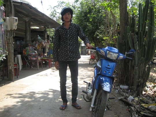| Anh Trần Văn Đỡ bên chiếc xe máy mua từ tiền bồi thường án oan. |