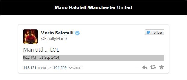 Ngay sau thất bại khó tin 3-5 của M.U trước Leicester City cuối tuần qua, tiền đạo Mario Balotelli đăng tải thông điệp trên twitter: "Man utd ... LOL - Man utd ... cười hết cỡ", với hàm ý chế giễu trận thua đáng xấu hổ của Quỷ đỏ. Tuy nhiên, dòng tweet này của Super Mario sau đó đã trở thành nơi để các Manucian trút giận. Những lời văng tục, thóa mạ và thậm chí phân biệt chủng tộc nhắm vào ngôi sao đang khoác áo Liverpool buộc cảnh sát phải nhập cuộc điều tra.