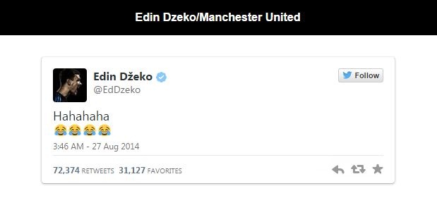 | Mang về sân Old Trafford rất nhiều tân binh đình đám nhưng thất bại trước Leicester City không phải là lần đầu tiên ở mùa giải năm nay, M.U trở thành đề tài đàm tiếu của các sao bóng đá. Sau thất bại kinh hoàng 0-4 của Quỷ đỏ trước đối thủ vô danh MK Dons tại vòng 2 cúp Liên đoàn Anh, tiền đạo Edin Dzeko đã không thể nhịn cười. Tất nhiên, giống với Balotelli, ngôi sao thuộc biên chế Man City cũng chịu chung số phận "gạch đá" từ các fan của đối thủ cùng thành phố. |
