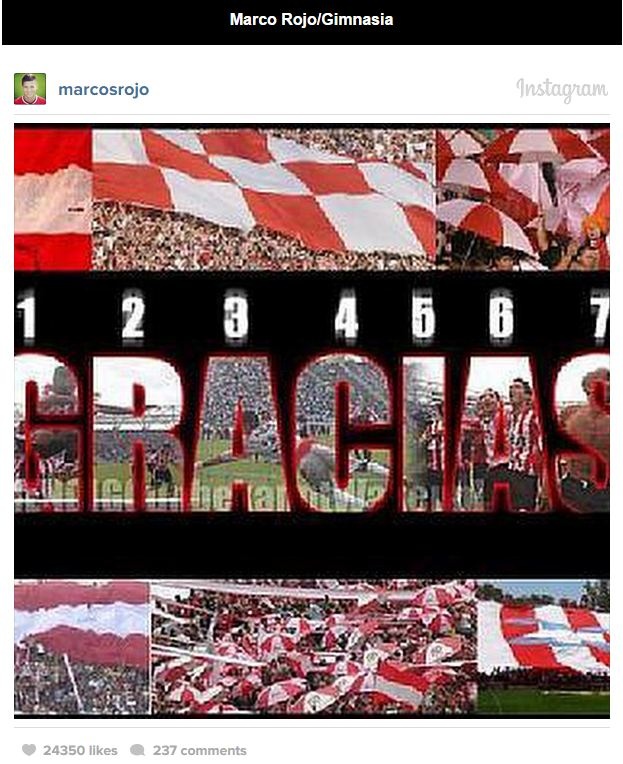 | Tân binh gia nhập M.U ở kỳ chuyển nhượng mùa hè vừa qua, Marcos Rojo cũng từng khiến cộng đồng mạng tại quê nhà nổi sóng. Ngay sau chiến thắng hủy diệt 7-0 của Estudiantess trước kình địch Gimnasia trong trận derby thành La Plata, Rojo cho đăng tải bức hình đầy mỉa mai thất bại của đối thủ. Với các ultra máu lửa của Gimnasia, họ coi đó là một sự xúc phạm nên hàng loạt lời đe dọa đã được gửi đến hậu vệ 24 tuổi. |