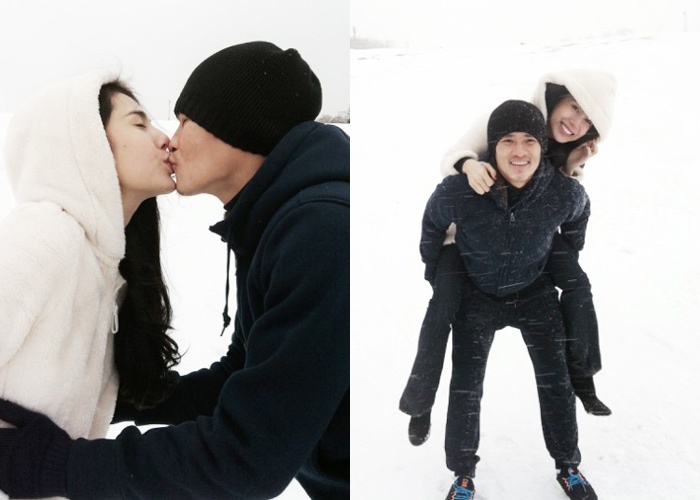 Trước các ống kính hay giữa chốn đông người, cựu người mẫu không ngại dành cho bạn gái những nụ hôn hay cử chỉ tình tứ. Đây cũng là lần đầu tiên anh công khai người yêu với công chúng dù trước đó, hồ sơ tình ái của anh có tên của nhiều người đẹp trong showbiz.