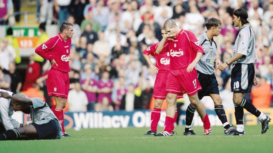 | Liverpool 1-3 Aston Villa (9/9/2001): Chỉ vài ngày sau khi thực hiện cú volley đẳng cấp góp công giúp tuyển Anh bất ngờ đánh bại Đức 5-1 ngay tại Munich, Steven Gerrard lại trở thành tâm điểm với chiếc thẻ đỏ trong cuộc so tài giữa Liverpool và Aston Villa. Pha vào bóng trên mức cần thiết của chàng tiền vệ trẻ với George Boateng là một trong những nguyên nhân khiến The Kop thúc thủ 1-3. |