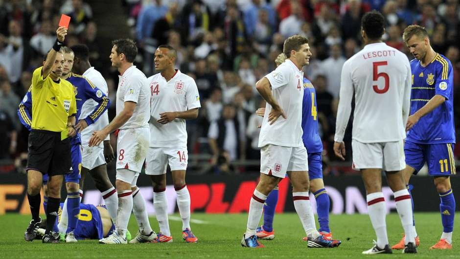 | Anh 1-1 Ukraina (11/9/2012): Tiếp đón Ukraina trên sân nhà trong khuôn khổ vòng loại World Cup 2014 nhưng tuyển Anh cũng phải nhờ tới bàn thắng trên chấm phạt đền của Frank Lampard ở phút 86 mới giữ lại 1 điểm. Màn trình diễn thất vọng của Tam Sư như được tô điểm thêm khi Gerrard bị đuổi khỏi sân ở những phút cuối. |