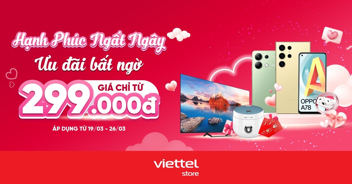 Trong 8 ngày diễn ra ưu đãi mừng Quốc tế hạnh phúc, Viettel Store sẽ tung ra loạt combo hấp dẫn mỗi ngày: “Dế xịn flagship giá hời”; “Điện thoại 2G lên 4G”; “Điện thoại giá tốt”. “Cấu hình ngon giá rẻ”; “Smartphone mới giá sốc”; “Siêu sale gia dụng - phụ kiện”; “Smartphone từ 3-6 triệu” và "Hệ sinh thái Xiaomi".