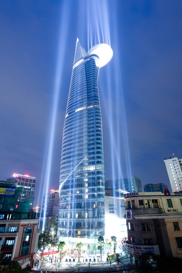 8. Tòa nhà Bitexco, TP HCM: Được xây dựng từ năm 2010, tòa nhà này mang hình dáng của búp sen, quốc hoa Việt Nam, mang ý nghĩa về mặt tâm linh và văn hóa. Tại đài quan sát được xây trồi ra ngoài 22 m, bạn sẽ được nhìn thấy toàn cảnh thành phố hiện đại nhất nhì Việt Nam.