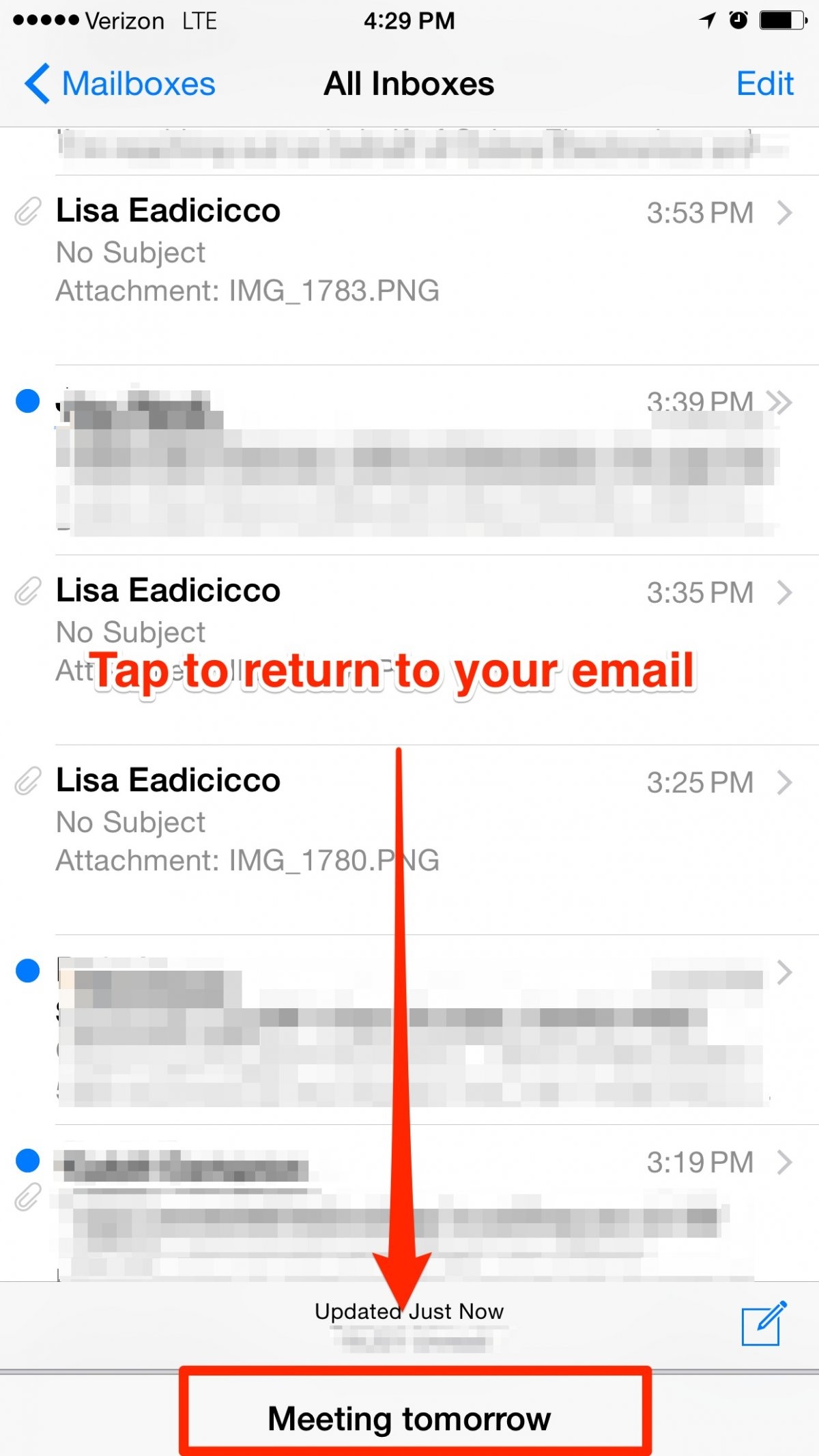 Trong lúc đang soạn mail nhưng muốn quay lại Inbox để kiểm tra lại những thư khác, người dùng có thể nhấp vào phần trên của khung soạn thảo, kéo thả về phía cạnh dưới màn hình. Khi cần quay trở lại, người dùng chỉ cần nhấp vào thanh tiêu đề.