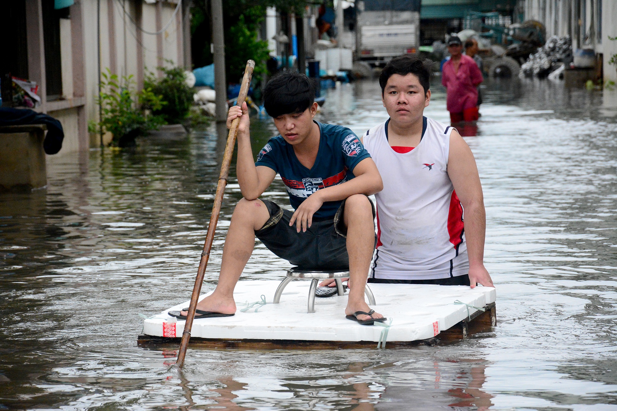 Tình trạng mưa ngập. Cơn mưa kỷ lục ngày 15/9/2015 đã làm 77 tuyến đường ở TP HCM ngập nặng. Nhiều nhà dân ở Sài Gòn ngập sâu hơn 1 m đến trưa hôm sau vẫn chưa rút. Đây là tình trạng diễn ra nhiều năm nay nhưng vẫn chưa được cải thiện. Bạn đọc Ngô Trọng Hiền ý kiến: “Mỗi lần Sài Gòn có triều cường hay vào mùa mưa, người dân đều rơi vào cảnh lao đao như đường ngập, kẹt xe… Hy vọng ông Đinh La Thăng giải quyết được vấn đề này”. Trong ảnh: Người dân trong hẻm đường Ấp Chiến Lược (phường Bình Trị Đông, quận Bình Tân) phải dùng bè để đi lại sau cơn mưa kỷ lục tháng 9/2015. |