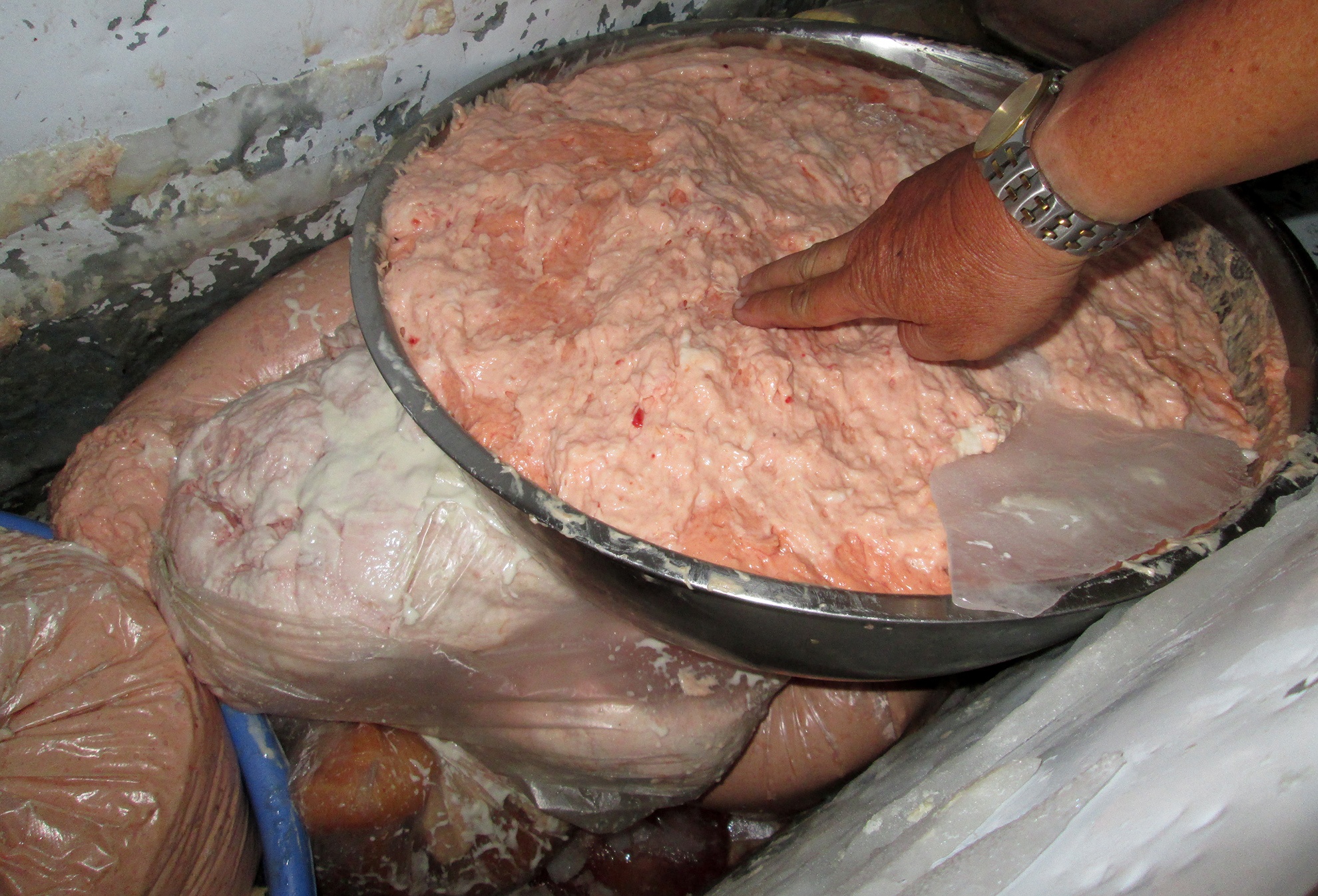 An toàn thực phẩm. Các loại thực phẩm như thịt, cá, rau củ nhiễm hóa chất, có nguồn gốc, xuất xứ không rõ ràng đang ảnh hưởng nghiêm trọng đến sức khỏe của người dân. Trong ảnh: Những bịch nguyên liệu làm giò chả giá rẻ bốc mùi hôi thối của cơ sở giò chả Như Hương (số 98 Bình Chiểu, phường Bình Chiểu, quận Thủ Đức) bị Đội QLTT Thủ Đức thuộc Chi cục QLTT TP HCM phối hợp với Phòng Y tế và Trạm Thú y quận Thủ Đức kiểm tra xử lý. Bạn đọc Nhật Nguyên kiến nghị: "Các loại lương thực, thực phẩm như thịt, cá, rau củ nhiễm hóa chất, có nguồn gốc, xuất xứ không rõ ràng đang ảnh hưởng nghiêm trọng đến sức khỏe của người dân. Mong tân Bí thư TP HCM can thiệp, xử lý mạnh tay”. |