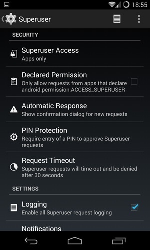 Ứng dụng SuperUser của CyanogenMod được tích hợp vào phần Cài đặt của Android, cho phép bạn điều khiển quyền sử dụng root của các ứng dụng khác. Không chỉ cho phép hoặc chặn các yêu cầu đòi hỏi quyền superuser từ các ứng dụng, màn hình SuperUser của CyanogenMod còn cho phép bạn root/unroot toàn bộ thiết bị của mình. Bạn sẽ không phải kết nối điện thoại hay tablet vào máy tính và thực hiện các dòng lệnh dài dòng, và bạn cũng sẽ không bị mất root khi nâng cấp lên CyanogenMod phiên bản mới hơn. Bản ROM này cung cấp cho bạn quyền root/unroot một cách dễ dàng bất cứ khi nào bạn muốn.