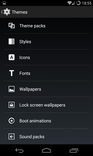 Mục Chủ đề (Themes) trong Cài đặt cho phép bạn cài và lựa chọn các gói giao diện, biểu tượng, font chữ, âm báo và thậm chí là cả hình động hiển thị khi khởi động máy. Gần như tất cả các thiết bị Android đều không hỗ trợ tùy biến giao diện tốt như CyanogenMod.