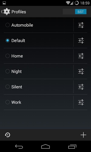 Các profile sẽ giúp bạn thay đổi chế độ sử dụng một cách nhanh chóng và tiện lợi. Ví dụ, nếu phải tắt chuông và thường xuyên sử dụng Wi-Fi tại nơi làm việc, bạn có thể tạo một Profile có tên "Work" (Công việc" với tùy chọn tắt chuông và bật Wi-Fi cài đặt sẵn. Thay đổi Profile sẽ giúp bạn chuyển một loạt tùy chọn chỉ với một vài nút bấm. Bạn cũng có thể dùng ứng dụng Tasker để tự động kích hoạt các Profile dựa theo thời gian, ví dụ như kích hoạt Profile dành cho công việc vào lúc 8:30 mỗi sáng.
