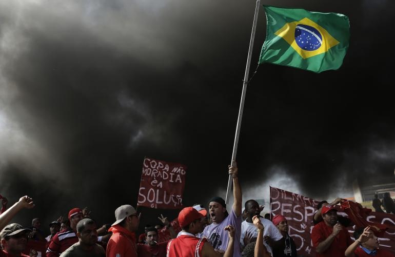 Người dân Brazil đã nhiều lần xuống đường phản đối chính phủ bỏ ra hàng chục tỷ USD cho công tác tổ chức World Cup. Hồi đầu tháng 5, “Movimeto dos Trabalhadores Sem-Teto” – tổ chức của những người vô gia cư đã khuấy động một cuộc biểu tình với 20.000 người tham gia. Họ trưng các biểu ngữ chống chính phủ, FIFA và tổ chức phong tỏa một đoạn đường dài hơn 240 km.