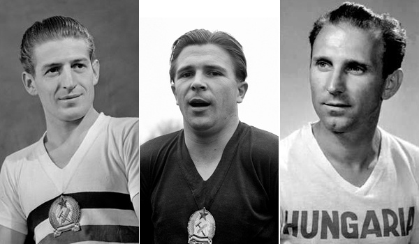 | 6. Nandor Hidegkuti, Ferenc Puskas và Sandor Kocsis (Hungary): Ferenc Puskas là một phần lịch sử của Real. Trong khi tên tuổi của Hidegkuti và Kocsis cũng rất nổi bật trong những thập niên 40, 50 của thế kỷ trước. Mỗi khi bộ ba này tái hợp trong màu áo đội tuyển Hungary, họ khiến hàng thủ đối phương "vã mồ hôi". Tỷ lệ ghi bàn của Puskas ở ĐTQG là 0,99 bàn mỗi trận (84 bàn sau 85 trận), còn của Kocsis là 1,103 bàn mỗi trận (75/68). |