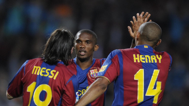 | 8. Samuel Eto'o, Thierry Henry và Lionel Messi (Barcelona): Messi là cầu thủ duy nhất có mặt trong 2 bộ ba huyền thoại. Siêu sao người Argentina kết hợp với Henry và Eto’o trở thành “mũi đinh ba” đầu tiên ghi 100 bàn thắng trong một mùa (2008/09). Phong độ thuyết phục của Eto'o, Henry và Messi giúp HLV Pep Guardiola đoạt “cú ăn ba” ngay mùa đầu tiên dẫn dắt Barca. |
