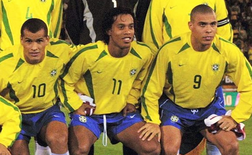 | 2. Rivaldo, Ronaldo và Ronaldinho (Brazil): Bộ ba “R” chưa từng sát cánh trong màu áo CLB. Tuy nhiên, họ là nỗi khiếp đảm của mọi đội tuyển cuối thập niên 1990, đầu những năm 2000. Tại World Cup 2002, giải đấu Brazil lên ngôi vô địch, bộ ba “R” đóng góp 15 bàn. Trong đó, Ronaldo dẫn đầu danh sách vua phá lưới với 8 bàn, Rivaldo đứng thứ 2 với 5 bàn (bằng Klose của Đức). |