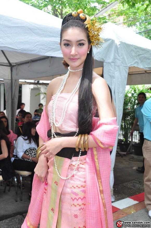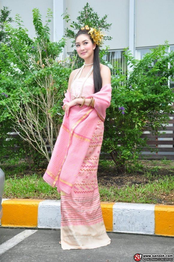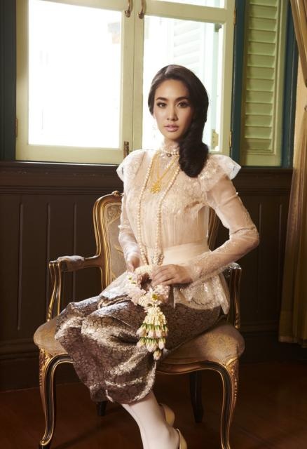 | Cô nàng lớp trưởng trong series phim Tuổi nổi loạn Pattie Sirapatsakmetha thật rạng rỡ và nữ tính khi khoác lên mình bộ váy Thái. |