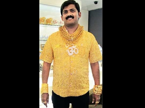 Các thợ kim hoàn của công ty Ranka Jewellers đã thiết kế bộ trang phục với áo bằng vàng ròng nặng 3,25 kg cho triệu phú người Ấn Độ Datta Phuge. Thân áo làm toàn bằng vàng 22 karat, cúc áo là 8 viên đá quý. Doanh nhân này sống tại thành phố Pune, bang Maharashtra phía tây Ấn Độ, và luôn bị ám ảnh bởi vàng.