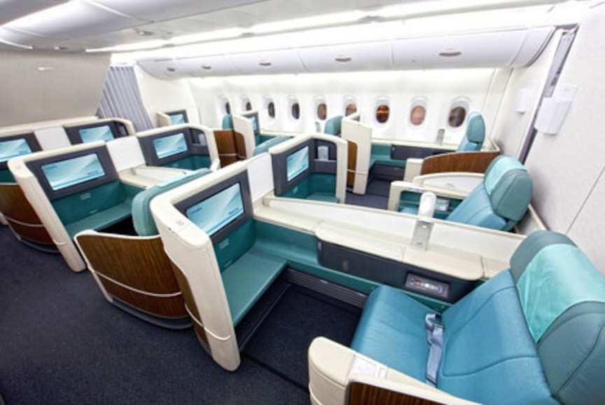 3. Korean Air - 27.000 USD (New York - Bắc Kinh) Khẩu hiệu của hãng hàng không Hàn Quốc cho khoang hạng nhất là: "Tìm kiếm một khách sạn ở độ cao 12 km". Theo đó, những chiếc ghế nhỏ gọn trong buồng cá nhân của nó có thể chuyển đổi linh hoạt thành khu làm việc thoải mái, cùng với tai nghe loại bỏ tiếng ồn. Để giải trí, khách có thể thư thả xem phim qua màn hình LCD 23 inch, bên cạnh đó là thưởng thức rượu champagne Laurent-Perrier Alexandra Rose 1998 và những món ăn ngon đậm hương vị Á Đông. |