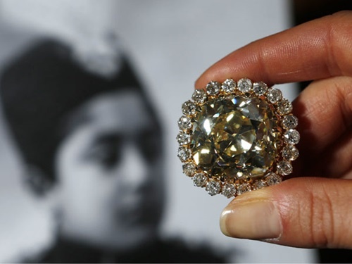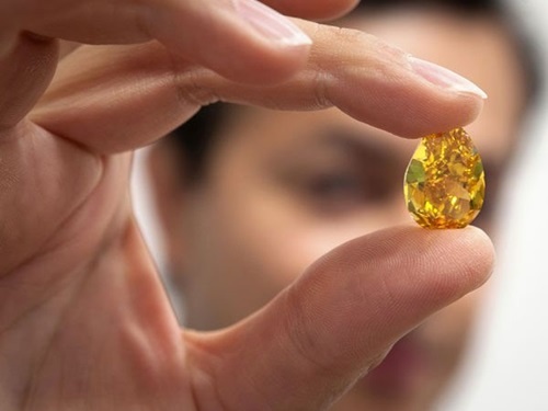 5. Fancy Yellow Viên kim cương quý giá này từng thuộc bộ sưu tập hoàng gia của Vương triều Ba Tư dưới thời vua Sultan Ahmed Shah Qajar (1909 - 1925). Fancy Yellow nặng tới 74,53 carat, được bao bọc bởi những viên kim cương trắng và từng được đính trên mũ lông hoàng gia. Sotheby thay mặt cho cháu nhà vua, bán viên kim cương này lần đầu tiên vào năm 1983, và lần thứ hai là vào tháng 5 vừa qua với mức giá 3 triệu USD. Thương vụ này đã lập kỷ lục về giá trên mỗi carat, tương đương 40.061 USD/carat. |