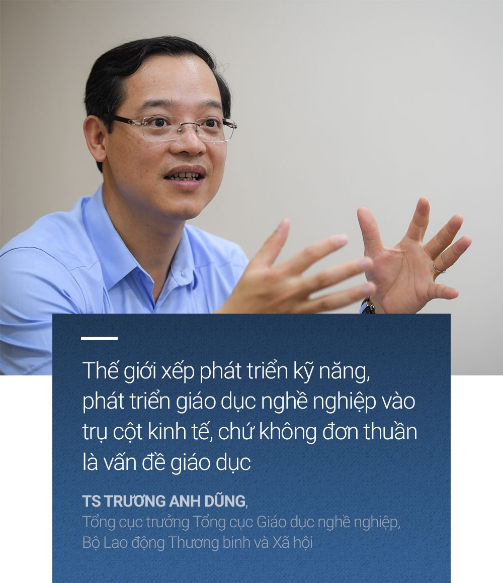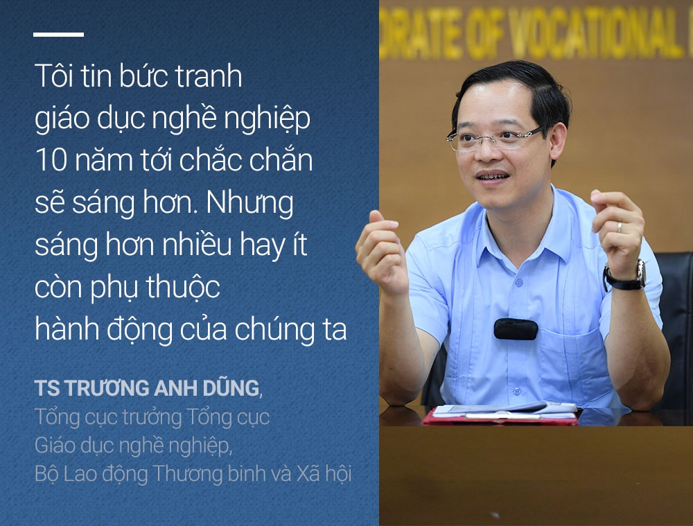TS Trương Anh Dũng, Tổng cục trưởng Tổng cục Giáo dục nghề nghiệp, Bộ Lao động - Thương binh và Xã hội, bày tỏ sự lạc quan vào tỷ lệ việc làm và bức tranh giáo dục nghề nghiệp trong 10 năm tới, với sự phát triển của thị trường lao động và sự hỗ trợ, vào cuộc của cả xã hội.