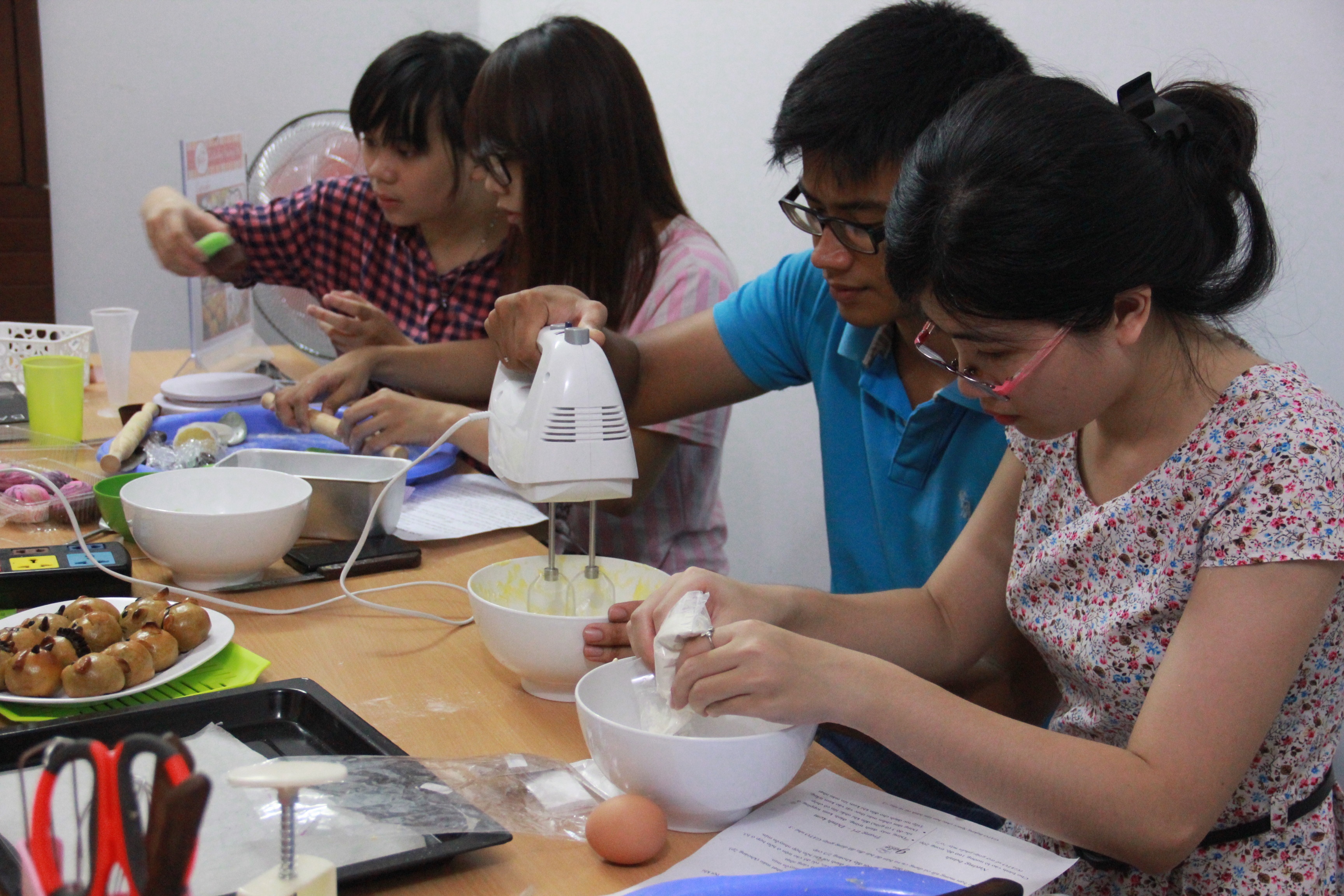 Khách đến quán học làm bánh thường theo cặp đôi hoặc theo nhóm, rồi cùng thưởng thức hoặc mang về làm quà tặng. Với công thức làm bánh được viết chi tiết, khách đến có thể lựa chọn làm bánh với nhiều kích thước, mẫu mã khác nhau dùng cho sinh nhật hay làm quà tặng. |