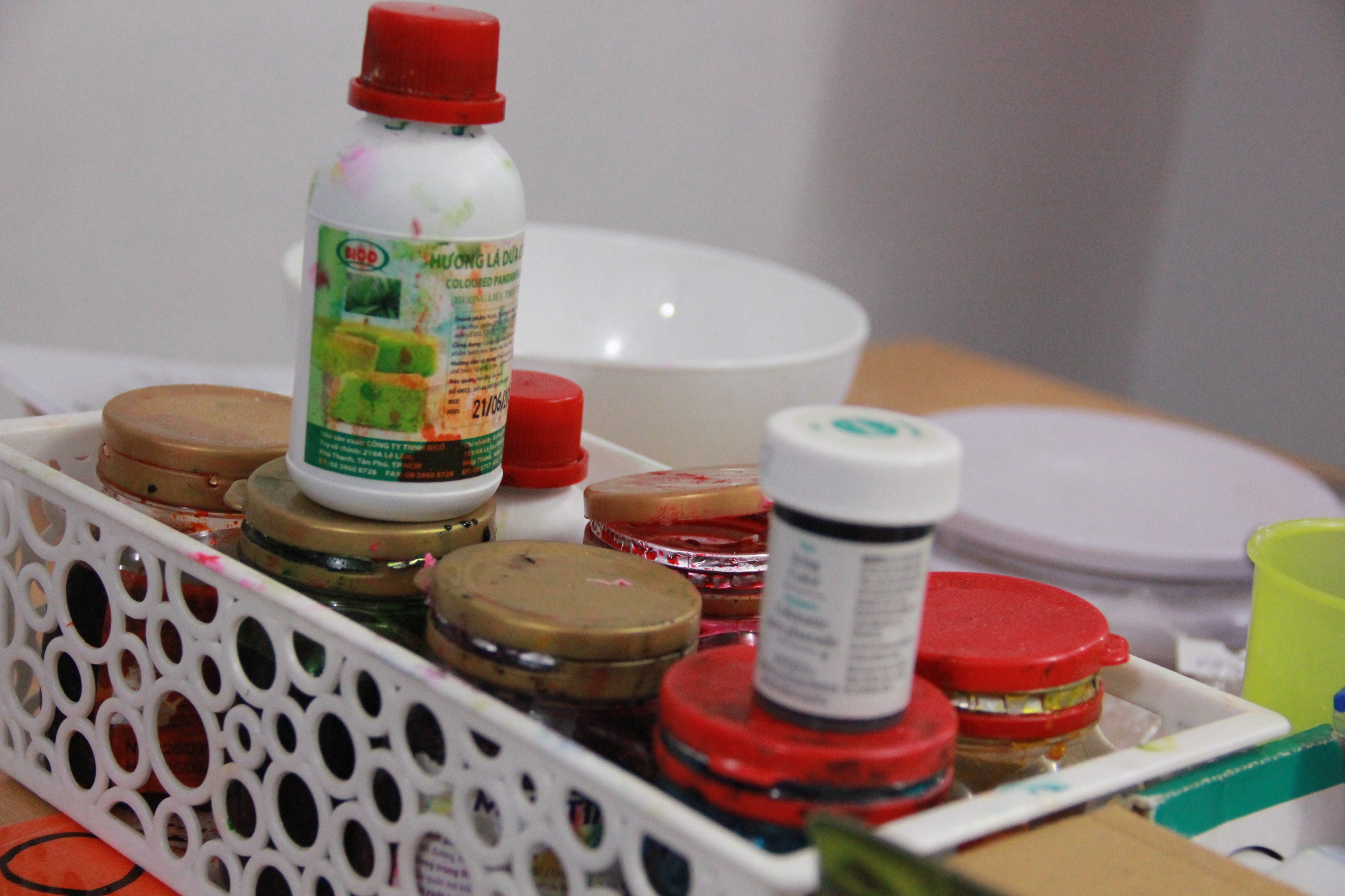 | Bột tạo màu cũng được nhập từ Mỹ, với giá hơn 85.000 đồng/hộp nhỏ. Tuấn Anh cho biết, để có thể hướng dẫn khách hàng một cách chi tiết, cả nhóm gồm 8 thành viên phải mất 2 tuần lên học cách làm bánh của một nghệ nhân trên phố Hàng Đường. |