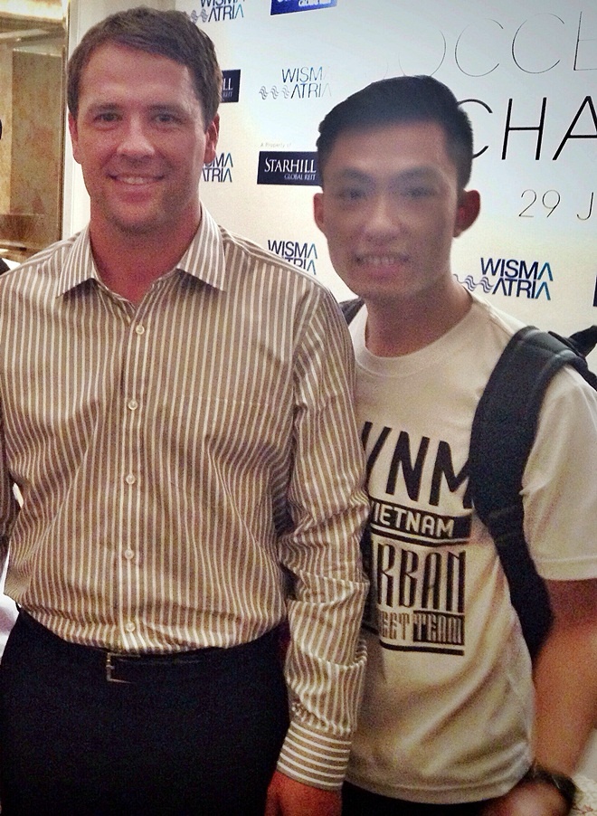 Chàng trai 8X này từng được gặp gỡ nhiều huyền thoại nổi tiếng trong làng bóng đá như Bryan Robson (đội trưởng Manchester United), Michael Owen, Deco và trọng tài nổi tiếng Colina.