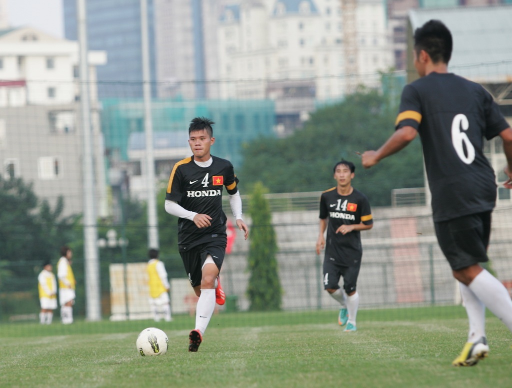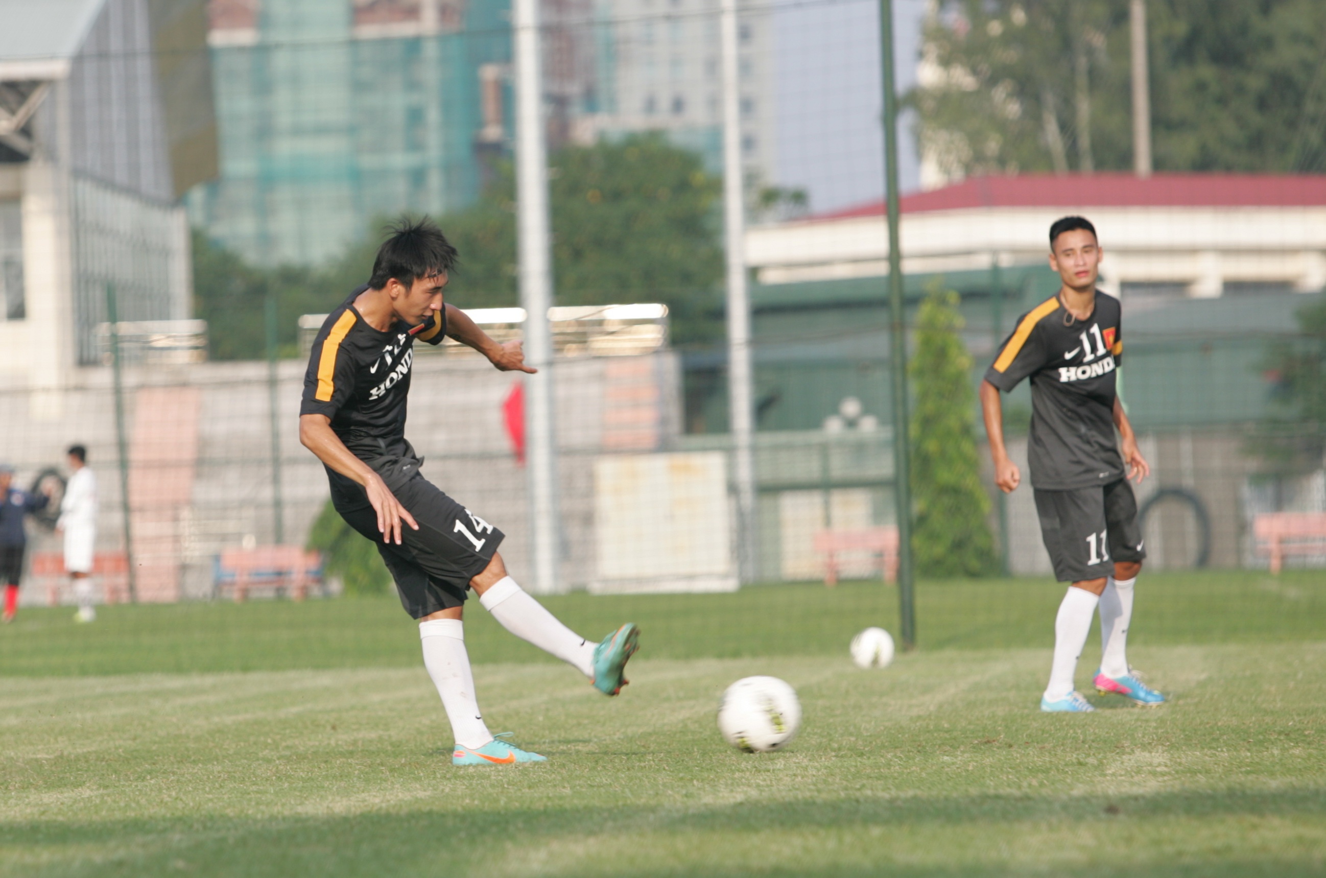 | Tiền vệ Nguyễn Hải Huy, cũng thuộc biên chế CLB Than Quang Ninh, tập luyện bên cạnh đồng đội ở CLB. |