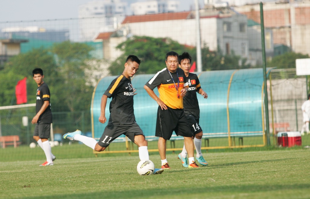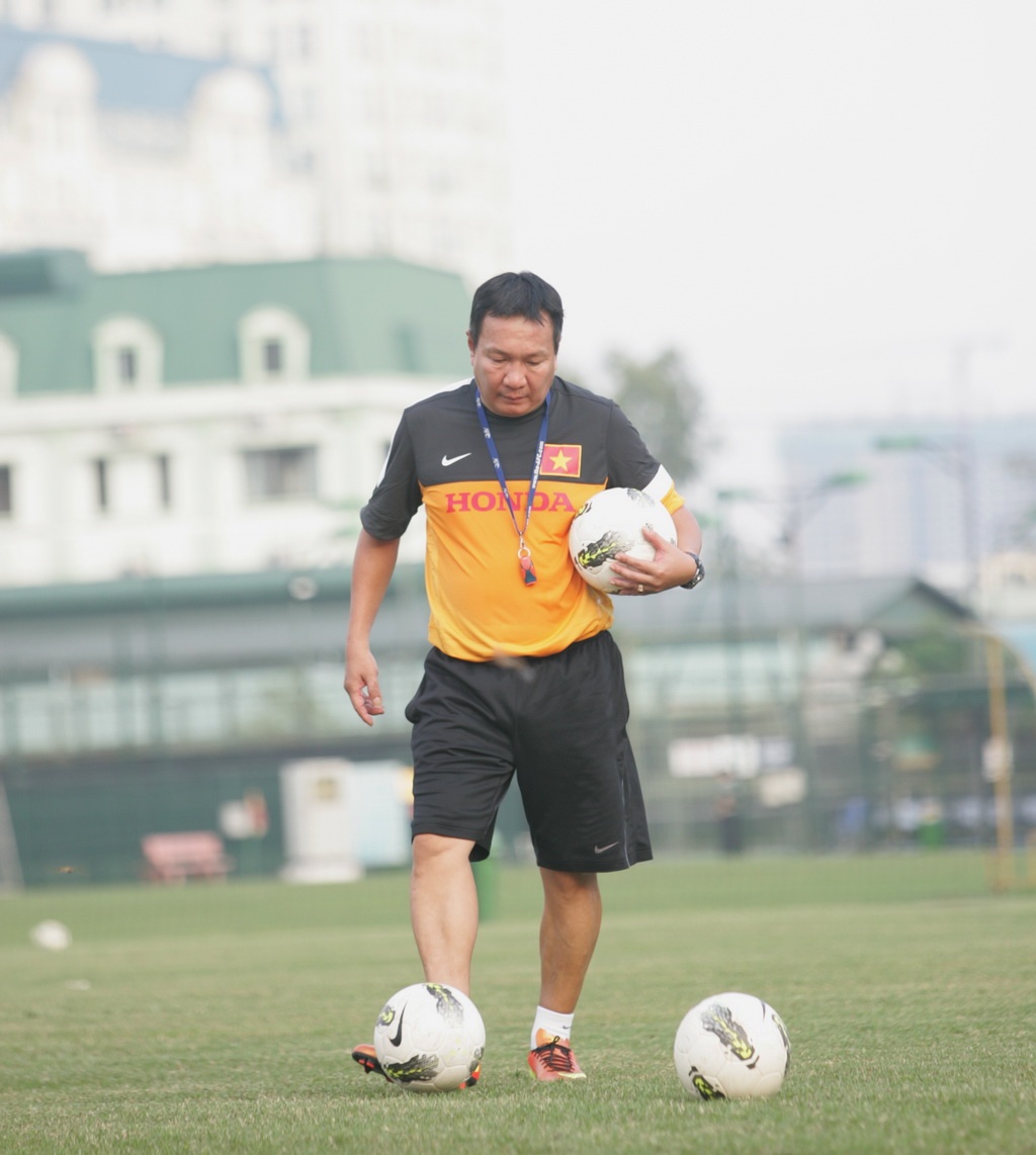 | HLV trưởng Hoàng Văn Phúc luôn theo sát và hướng dẫn các học trò tập luyện. |