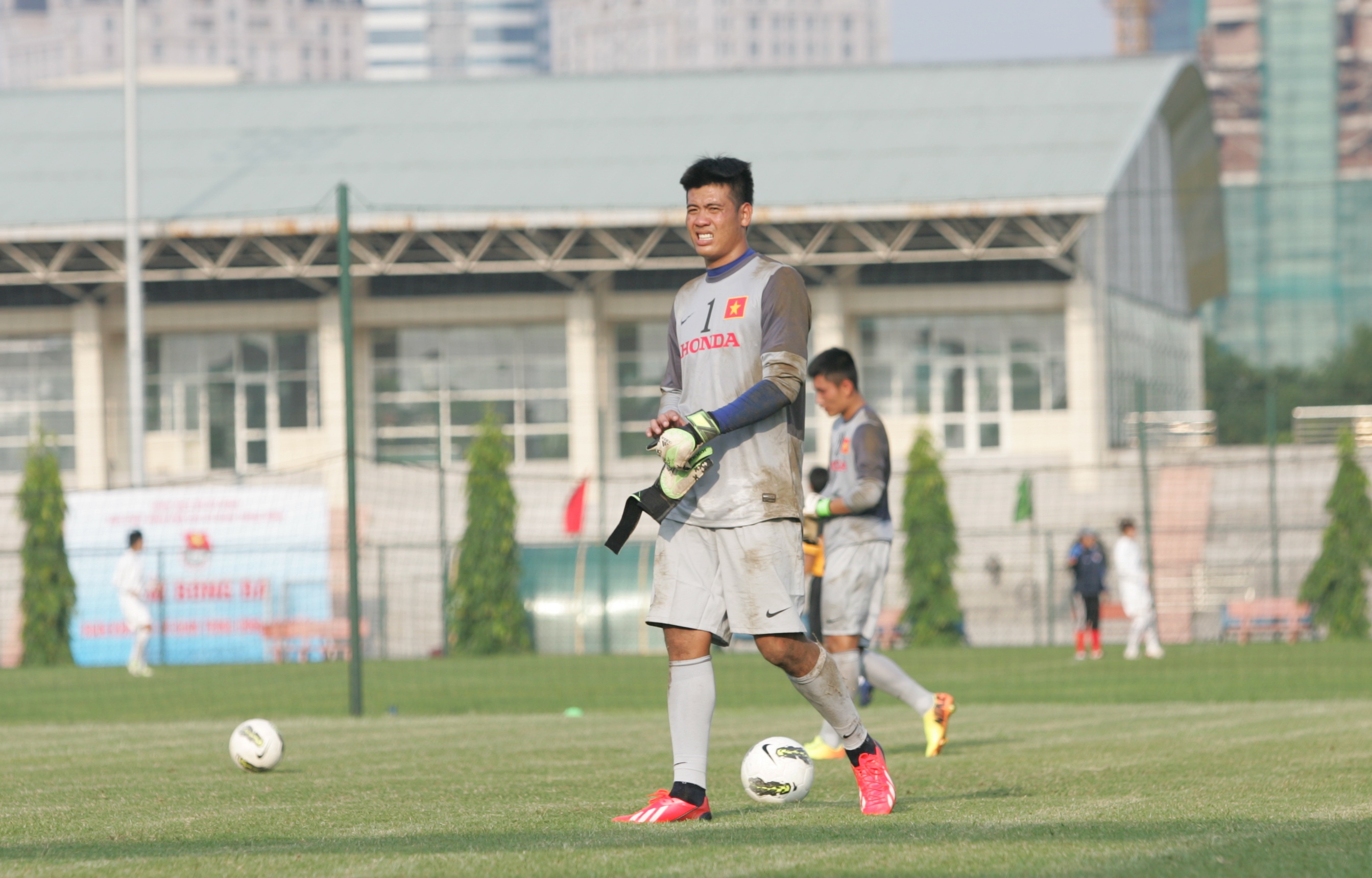 | Thủ môn Bửu Ngọc với thể hình lý tưởng khẳng định vị trí số 1 nơi khung gỗ đội U23 Việt Nam. |