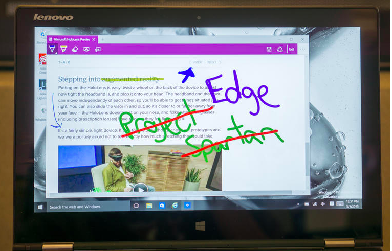 Ngoài ra, trợ lý ảo Cortana sẽ đưa ra những gợi ý liên quan trong thanh địa chỉ khi bạn tìm kiếm, ví dụ như thông tin về công ty, website nhà hàng... Click vào nút Web Note và bạn có thể thoải mái vẽ lên trang web mình đang dùng và lưu nó dưới dạng bản ghi chú để gửi cho người khác qua email hoặc qua OneNote.