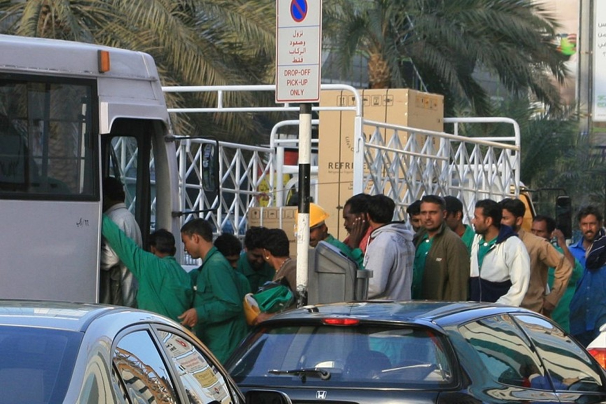 Điều kiện tồi tệ cho lao độngchân tayAbu Dhabi dường như không mấy quan tâm tới điều kiện chỗ ở cho người lao động chân tay. Nhiều người phải sống trong những trại lao động và buộc phải ăn uống ngoài trời, dưới cái nóng khủng khiếp và thức ăn bên ngoài không được phép mang vào. Điều tệ hơn là thức ăn trong các trại lao động được nấu trong những khu vực bẩn thỉu và nhiều người muốn tự mang đồ ăn từ nhà tới đây. |