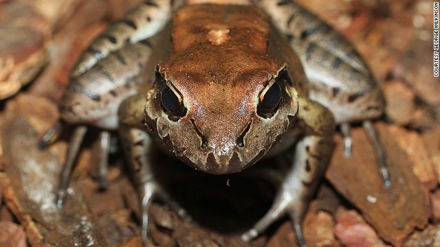 Ếch mương khổng lồ là loại ếch sống tại quần đảo Dominica và Montserrat ở Caribbean. Số lượng ếch này giảm 80% trong thập kỷ qua vì con người săn bắt để chế biến các món đặc sản trong nhà hàng. Loài ếch mương khổng lồ hiện nằm trong danh sách các loài đứng trước nguy cơ tuyệt chủng. Theo IUCN, hiện tại, chỉ còn khoảng 8.000 con còn sống. Ảnh: George Winkinson.