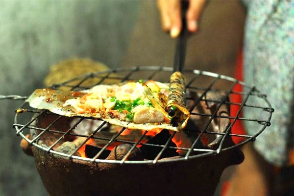 Bánh tráng mắm ruốc nướng là một trong những món đặc sản được nhiều người yêu thích. Khác với phiên bản “pizza kiểu Việt” của bánh tráng nướng Đà Lạt, bánh ở Phan Thiết có thêm mắm ruốc, bơ, trứng, chả, nem, hành lá… nướng chín rồi cuộn tròn hay gấp tam giác, giá 5.000 một cái. Trước cổng trường học hay dọc ngã tư Trần Hưng Đại - Thủ Khoa Huân, ngã 3 Tam Biên gần cà phê Tiếng Xưa đường Trần Hưng Đạo; hay trên đường Ngư Ông lối vào Vạn Thủy Tú… là những nơi nổi tiếng với món này. |