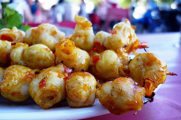 Trứng vịt lộn, cút lộn ở đâu cũng có, nhưng nếu thích ăn vặt, bạn cũng đừng bỏ qua món này khi đến Phan Thiết. Món khác đôi chút là ngoài rau răm, trứng còn được ăn cùng đồ chua, tỏi, muối tiêu, ớt, với giá 6.00-7.000 một trái. Bạn có thể thưởng thức món ăn này ở các hàng quán dọc lề đường ở Phan Thiết vào mỗi buổi chiều tối. |