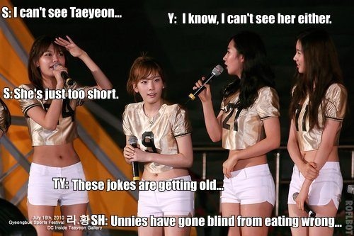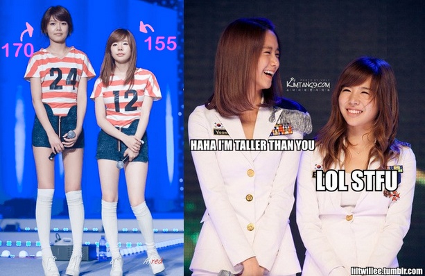 | Chiều cao của Sunny và Tae Yeon thường xuyên bị fan đem ra chế ảnh vui. |