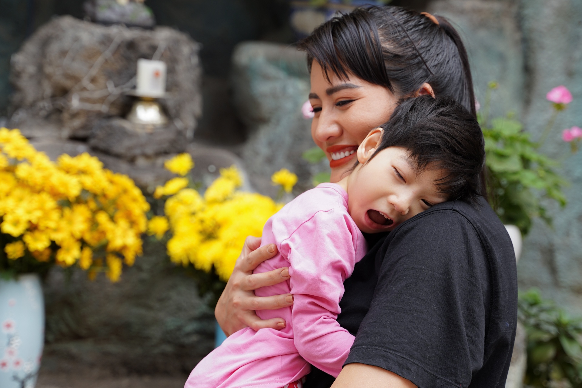 Ôm con trên vai, Minh Cúc tâm sự chị cảm thấy lòng nhẹ tênh mỗi khi bước chân vào nhà thờ. Điều chị cầu nguyện luôn là sự bình yên cho hai mẹ con. 9 năm qua, chị đã thẳng thắn đối diện với bệnh tật của con, với những gì được cho là vất vả nhất.