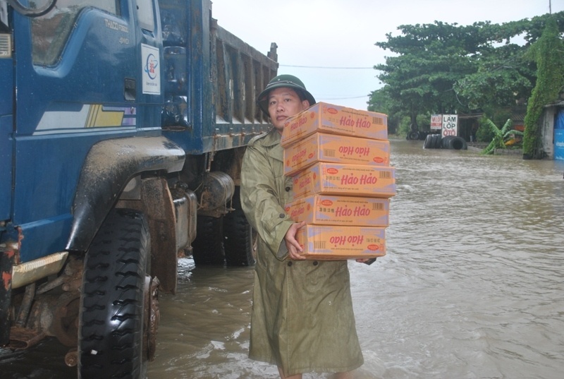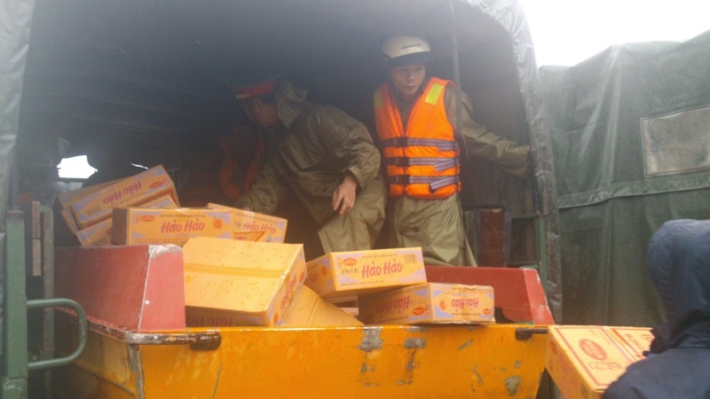 | Trong ngày 1/10, lực lượng chức năng đã huy động được hàng ngàn thùng mì tôm, lương khô để cấp phát kịp thời cho đồng bào vùng bị cô lập. |